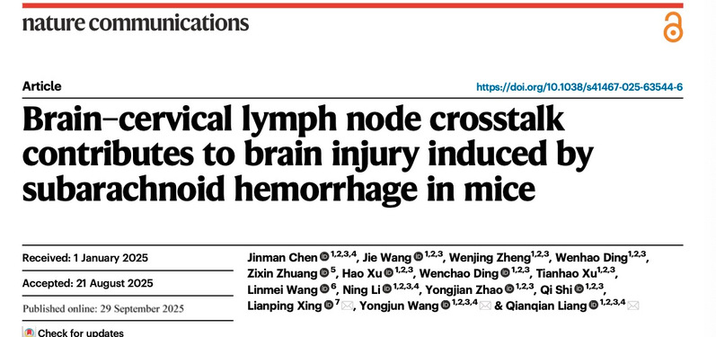 再登Nature Communications!我校梁倩倩研究员、王拥军教授团队破解脑损伤病理机制