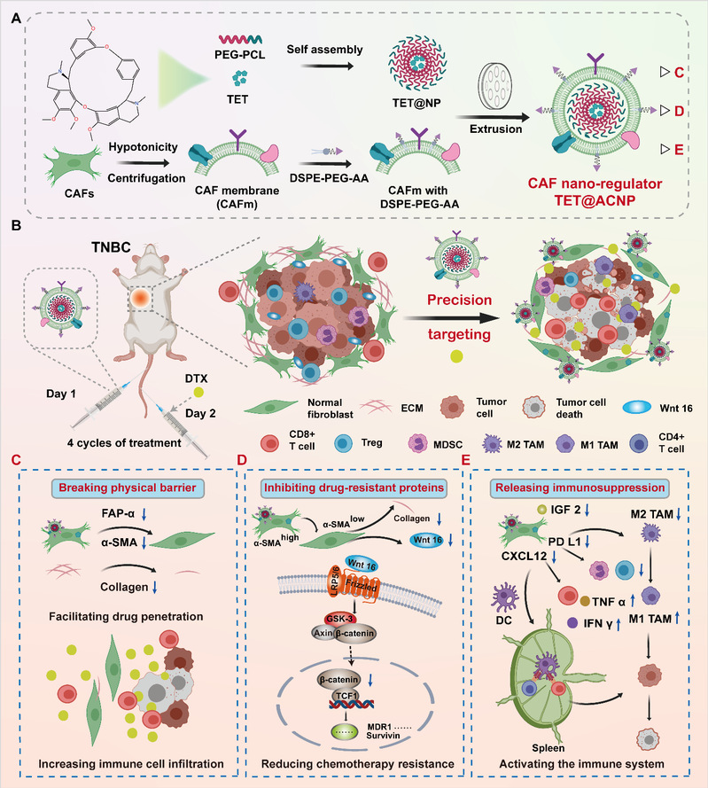 中药学院胡凯莉团队设计精准靶向癌症相关成纤维细胞的纳米调节器增强三阴性乳腺癌化疗免疫疗法