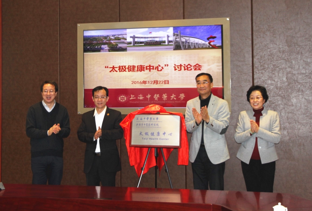 12月22日,我校“太极健康中心”讨论会暨揭牌仪式在国际交流中心举行。世界卫生组织传统与补充医学部主任张奇、国家中医药管理局科技司中医科技处处长王思成、上海市卫计委中医监管处处长赵致平、我校副校长季光出席会议,并为“上海中医药大学上海市中医药研究院太极健康中心”揭牌。