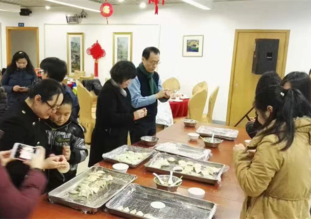伴随着喜庆的音乐,师生一起写心愿卡、包饺子。随后,全国各地同学的方言祝福视频拉开了此次团拜会的序幕。校领导一起向大家送上节日祝福,全场师生共同祝愿学校的明天更美好。国教院的留学生们为大家献上舞蹈《传统蒙古舞》,校武术队表演了《中华神韵》,研究生院的同学们用方言送上祝福,还演唱了一曲《至少还有你》。现场气氛热烈,掌声、欢笑声、祝福声此起彼伏。