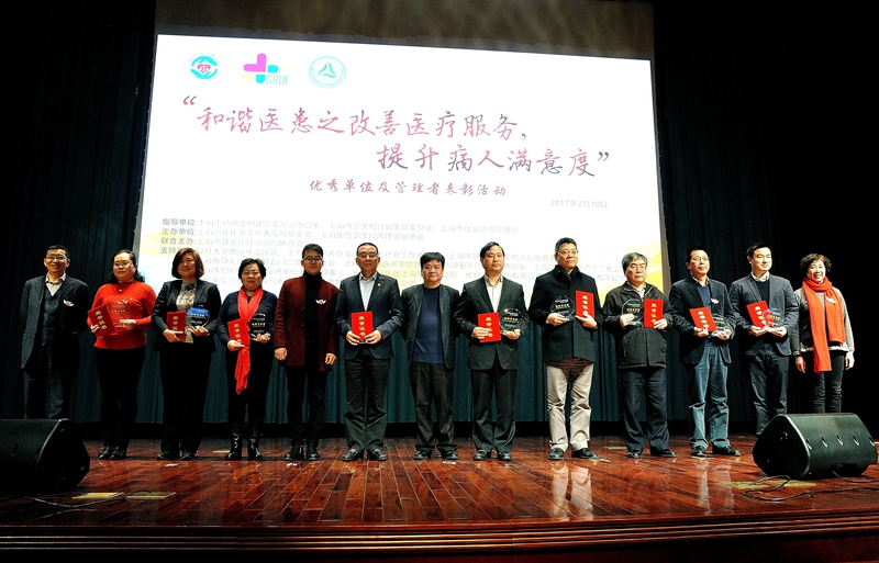 2月10日下午,在上海市精神文明建设委员会办公室、上海市卫生和计划生育委员会、上海市社会团体管理局的指导下,由上海医药卫生行风建设促进会、上海尚医医务工作者奖励基金会联合静安区社会组织联合会举办的“和谐医患之改善医疗服务,提升病人满意度”优秀单位及管理者表彰大会召开。龙华医院荣获“和谐医患之改善医疗服务,提升病人满意度”创新管理奖,龙华医院院长肖臻、党委书记刘胜荣获“优秀管理者”称号,肖臻代表龙华医院领奖。