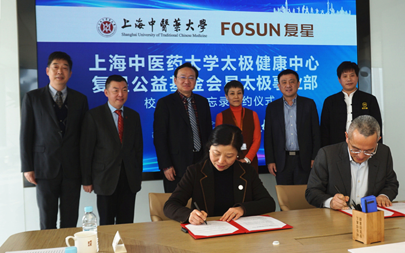 1月21日,上海中医药大学太极健康中心与复星公益基金会星太极事业部校企合作备忘录签约仪式在上海外滩金融中心举行。我校校长、上海市中医药研究院院长徐建光,副校长胡鸿毅,复星集团监事会主席谈剑,复星国际执行董事、联席总裁陈启宇以及两家单位的相关部门负责人出席签约仪式。