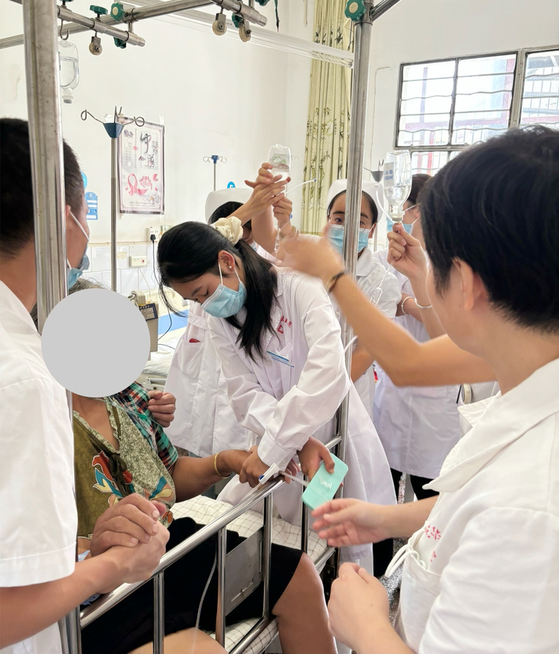 在迤萨镇红河县中医医院巡诊期间,针对当地医护基础知识薄弱、临床应急能力不足的情况,医疗队专家成员分别进行了“临床心电图解读”“急救药物的临床运用”“骨科急性损伤的诊断预处理”“无菌性前列腺炎的针灸治疗方案和技术推广”等专题讲座。针对医院住院医师,开展了“心律失常”“过敏性休克”的情景模拟教学,向当地医护人员展示了先进的教学方式,让住院医师在一个个实际场景中,学习相关医学知识,共计开展教学查房27人次,疑难病例会诊17人次,专题讲座12次。
