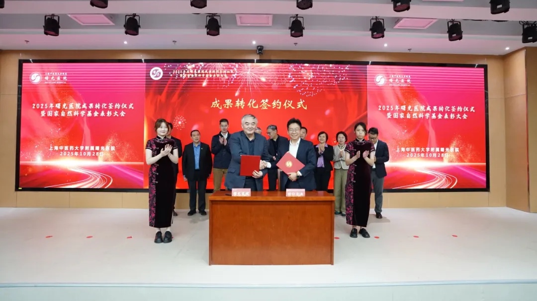10月28日,上海中医药大学附属曙光医院召开“2025科研成果转化签约仪式”,全面总结近年来医院在科研成果转化领域取得的突破性进展,展示中医药创新发展的新成效。上海市科学技术委员会、上海市卫生健康委员会、上海申康医院发展中心相关领导出席大会,上海中医药大学副校长王拥军出席并致辞,共同见证曙光医院在科研成果转化领域的新突破。