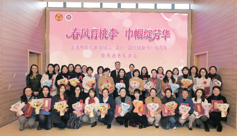 3月12日,“春风育桃李 巾帼绽芳华”上海中医药大学纪念“三八”国际妇女节116周年暨先进表彰大会在全球合作伙伴中心报告厅举行。校领导、上海市级、校级各类巾帼先进称号获得者、相关职能部门负责人、二级学院党政领导,以及部门工会及女工委代表共90余人出席。大会由校工会常务副主席、女工委主任段艳霞主持。