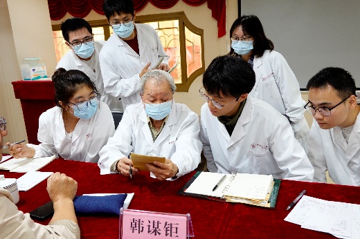 活动现场还活跃着我校十余名学生志愿者的身影。他们通过跟诊学习,近距离观摩老教授们娴熟的诊疗技艺,体悟“以患者为中心”的行医理念。