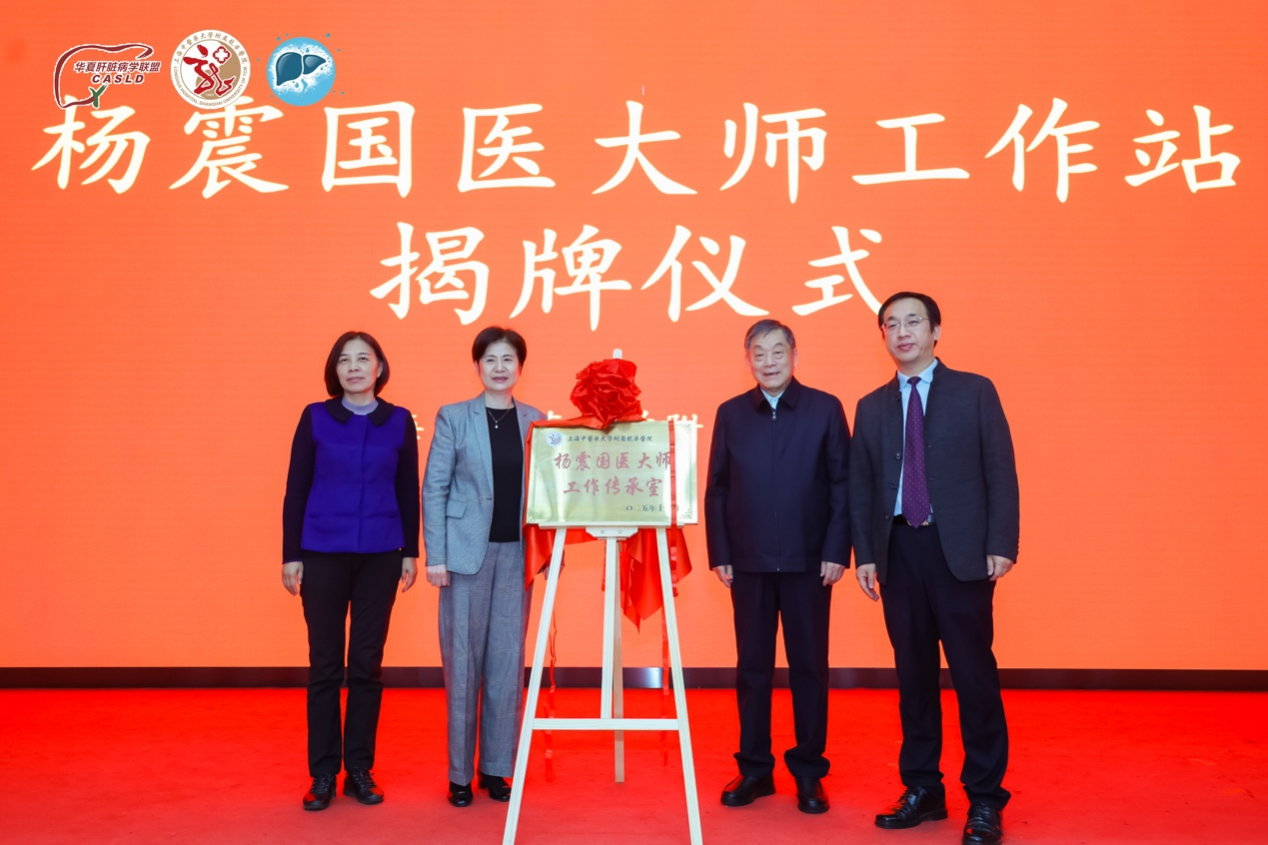 杨震国医大师、龙华医院刘萍副院长、郝红梅主任、刘光伟主任共同为杨震国医大师传承工作室揭牌,标志着杨震国医大师传承工作站正式落户附属龙华医院,附属龙华医院的中医药传承建设又迈出了重要一步。