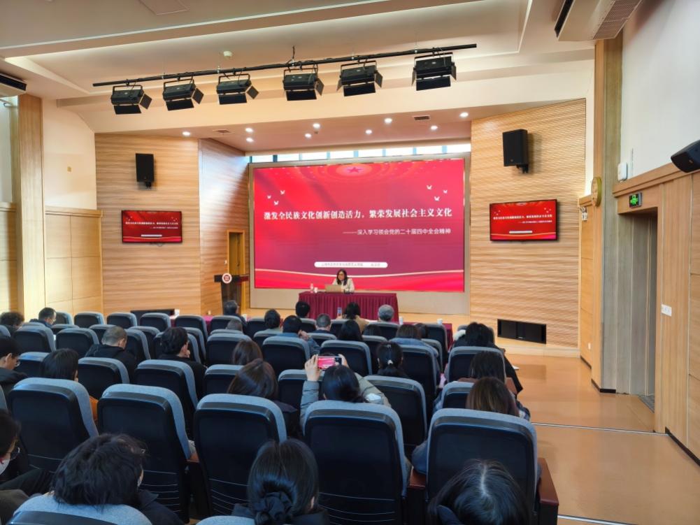 为深入学习贯彻党的二十届四中全会精神,切实担负新时代文化使命,12 月 4 日下午,图书馆党总支与博物馆党支部在全球伙伴合作中心报告厅联合组织开展理论学习中心组学习暨教职工政治理论学习。活动特别邀请“杏马”理论宣讲团彭卫华副教授作“激发全民族文化创新创造活力,繁荣发展社会主义文化”主题宣讲。图书馆(杂志社)、博物馆全体教职工共同参加学习。听取主题宣讲后二个直属党组织的全体委员进行学习交流。会议由图书馆党总支书记石德响主持。