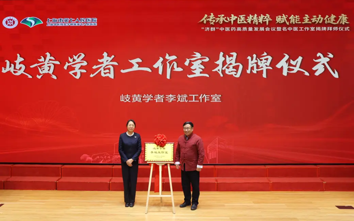 1月13日下午,“济群”中医药发展会议暨名中医工作室揭牌拜师仪式在我校附属第七人民医院(以下简称“七院”)举行。上海中医药大学、上海市卫健委、浦东新区卫健委相关领导及16家中医医联体社区卫生服务中心主要负责人出席。