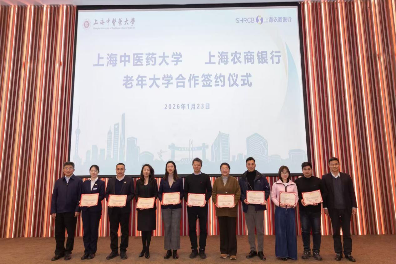 在双方领导共同见证下,上海中医药大学老年大学和上海农商银行心家园老年大学签署合作协议。双方互聘优秀师资并颁发聘用书。