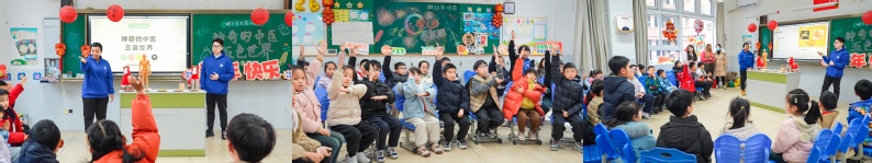 2月5日,我校国际学生走进浦东新区新场镇石笋实验小学爱心寒托班,为小学生带来一堂别开生面的中医药文化体验课。团市委副书记(挂职)唐志宇,浦东新区团区委书记赵辉茂,上海中医药大学党委副书记、副校长孟煜一行走访慰问,新场镇党委书记魏文、党委副书记蒋畅泓等陪同,团市委社会联络部、青年报社相关领导出席。